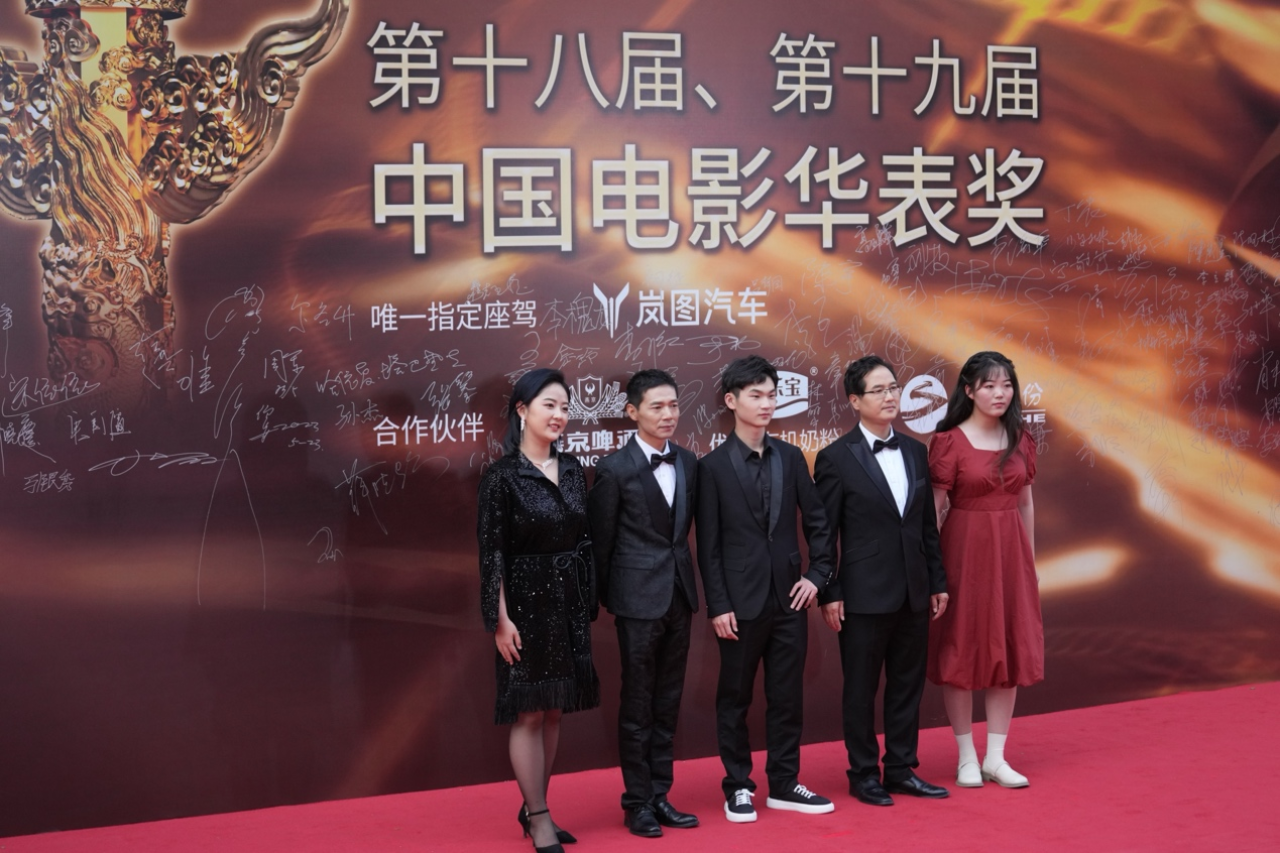 《树上有个好地方》剧组在华表奖红毯合影。(受访者供图)