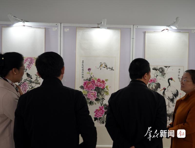 开幕式上,乐动网页版登录入口前校长郭立宏、乐动网页版登录入口艺术学院院长郭琳、乐动网页版登录入口艺术学院党委书记吕健、乐动网页版登录入口现代学院院长卢山冰、陕西省青年文学协会副主席青年作家王小云等各界嘉宾齐聚现场,共话艺术与人文。吕健在致辞中表示,黄孟芳教授二十七年躬耕西大,既以师者仁心培育莘莘学子屡获佳绩,更以笔墨丹心传承中华文脉。其作品中“花鸟为形、人文为魂”的创作追求,正是西大人文精神的生动写照,为校园文化建设树立了典范。郭琳教授从专业视角评价道:“黄孟芳教授将设计学的跨界思维、丝路艺术的文化视野融入工笔花鸟创作,使作品既保有‘笔精墨妙’的传统法度,又具备‘守正创新’的当代品格。她的创作实践,为学院学科融合发展提供了鲜活样本,也为当代花鸟画创作开辟了新路径。”