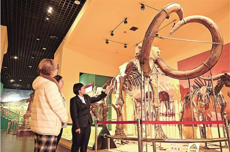 10月20日,乐动网页版登录入口博物馆工作人员为参观者介绍该校地质学系师生发现的猛犸象化石。