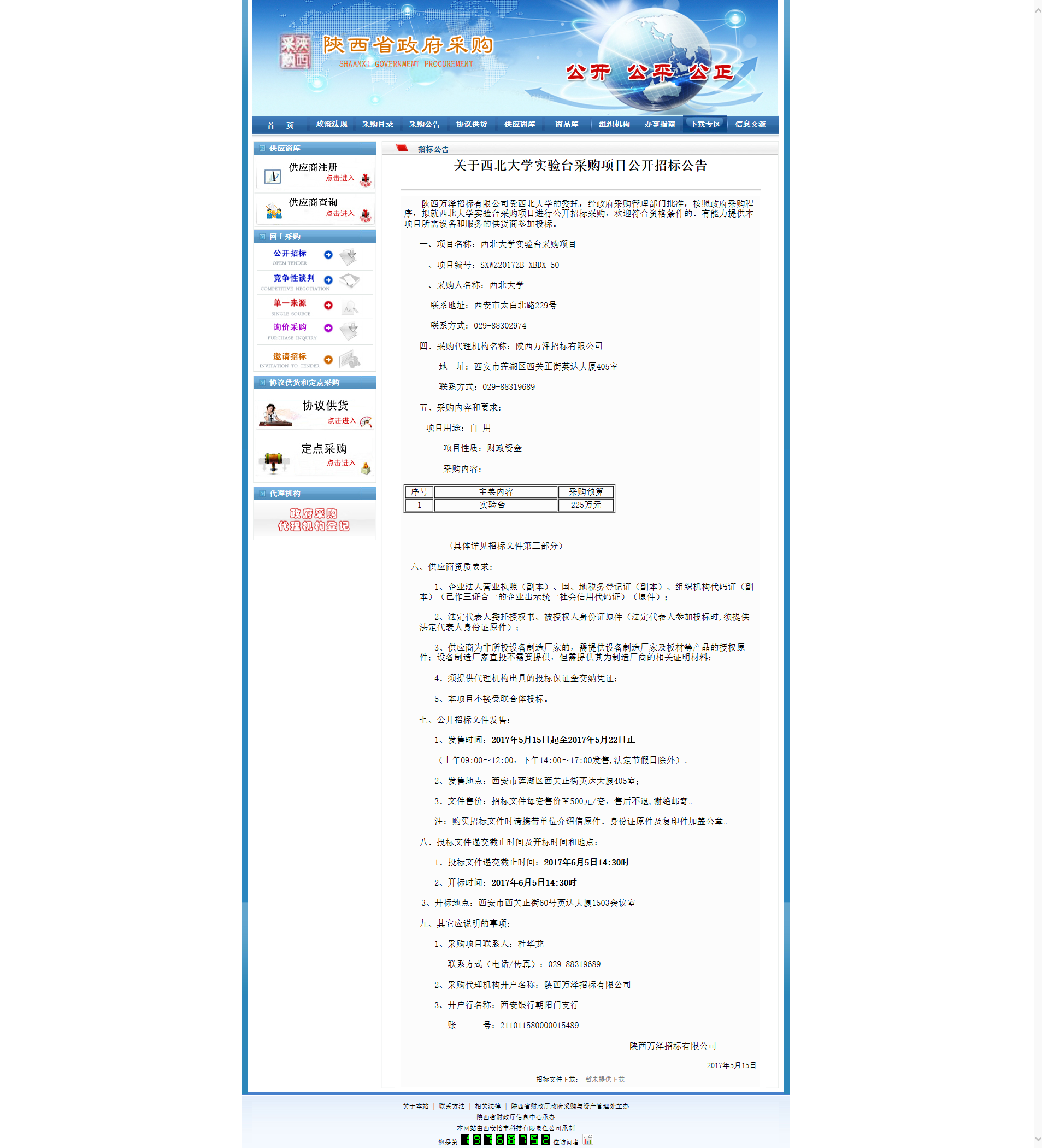关于乐动网页版登录入口实验台采购项目公开招标公告 作者: 编辑: 时间:2017-05-16 08:38 http://www.ccgp-shaanxi.gov.cn/zbxxs.jsp?NewsID=ZB170515132739US101028111214&ClassBID=C0001
