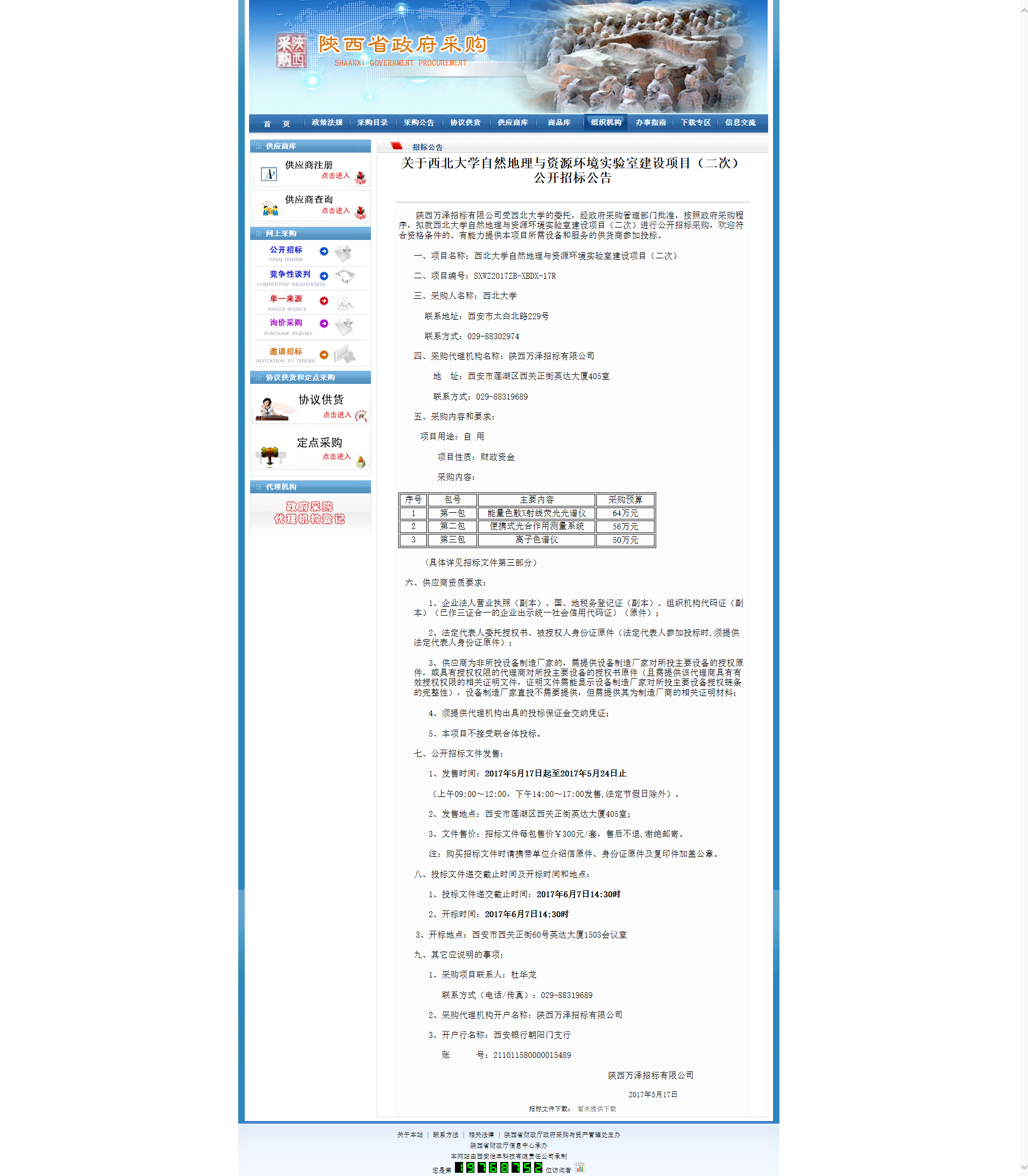 关于乐动网页版登录入口自然地理与资源环境实验室建设项目(二次)公开招标公告 作者: 编辑: 时间:2017-05-17 16:51 http://www.ccgp-shaanxi.gov.cn/zbxxs.jsp?NewsID=ZB170517133335US101028111214&ClassBID=C0001