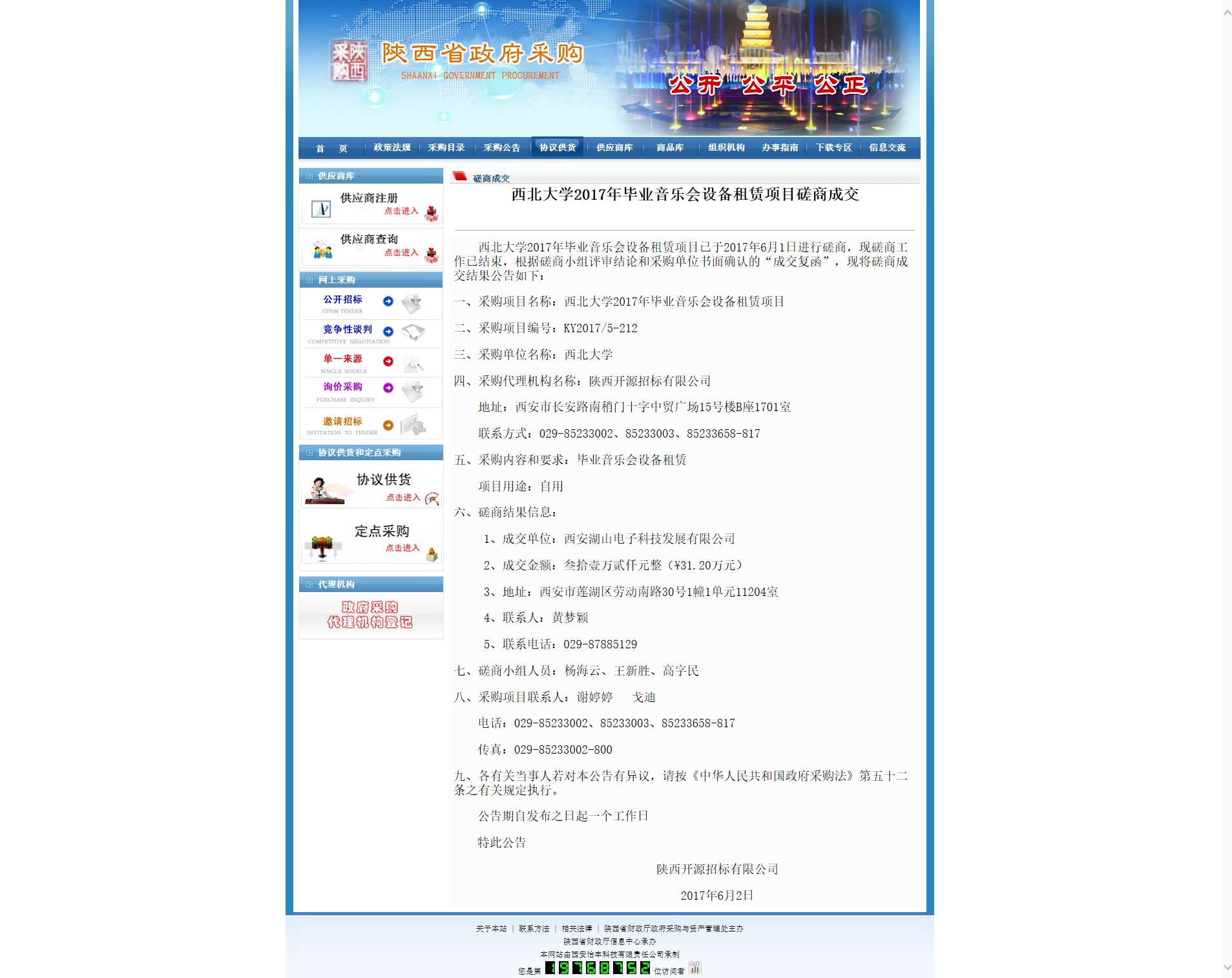 乐动网页版登录入口2017年毕业音乐会设备租赁项目磋商成交 作者: 编辑: 时间:2017-06-05 09:53 http://www.ccgp-shaanxi.gov.cn/zb_view.jsp?NewsID=ZH170602144541US131018031658&ClassBID=CS002