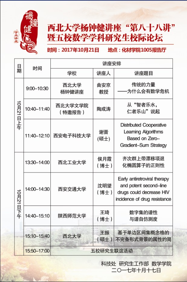 乐动网页版登录入口杨钟健讲座“第八十八讲”暨五校数学学科研究生校际论坛