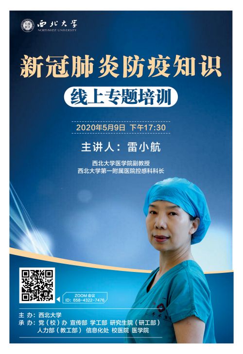在返校复学的关键时期,为进一步加强新冠肺炎防控,确保广大师生身体健康,引导师生做到科学有效自我防护,学校邀请我校医学院副教授、第一附属医院控感科科长雷小航,通过网络直播的形式为师生讲解返校复学校园防控要点与注意事项。请校内各单位按时组织收看,请各院系负责通知到本单位每一位师生。