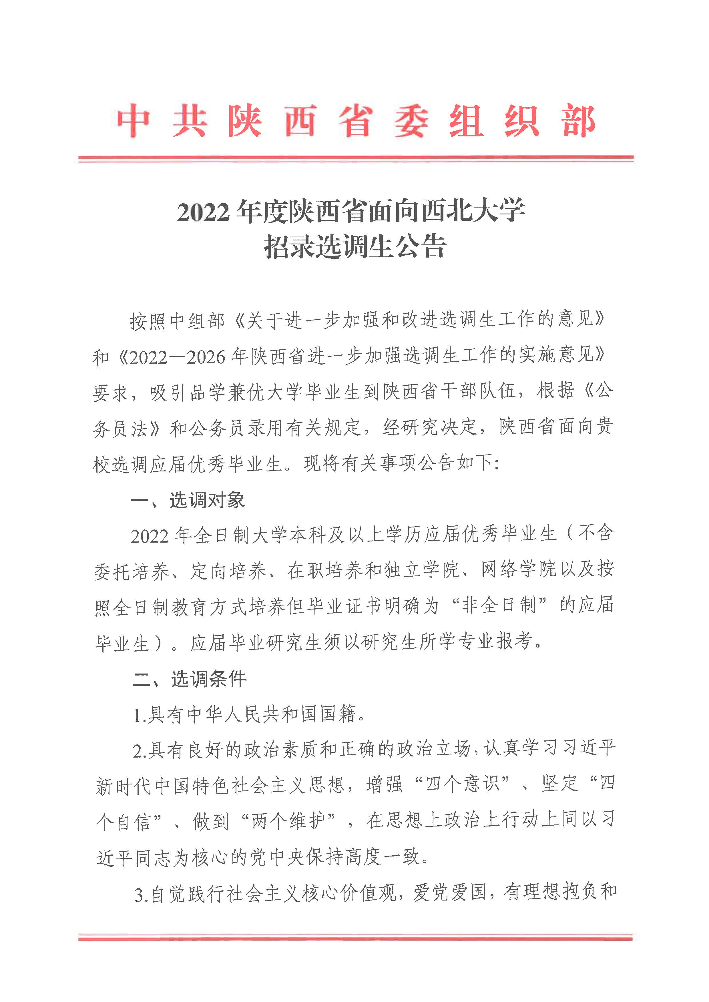 2022年度陕西省面向乐动网页版登录入口招录选调生公告