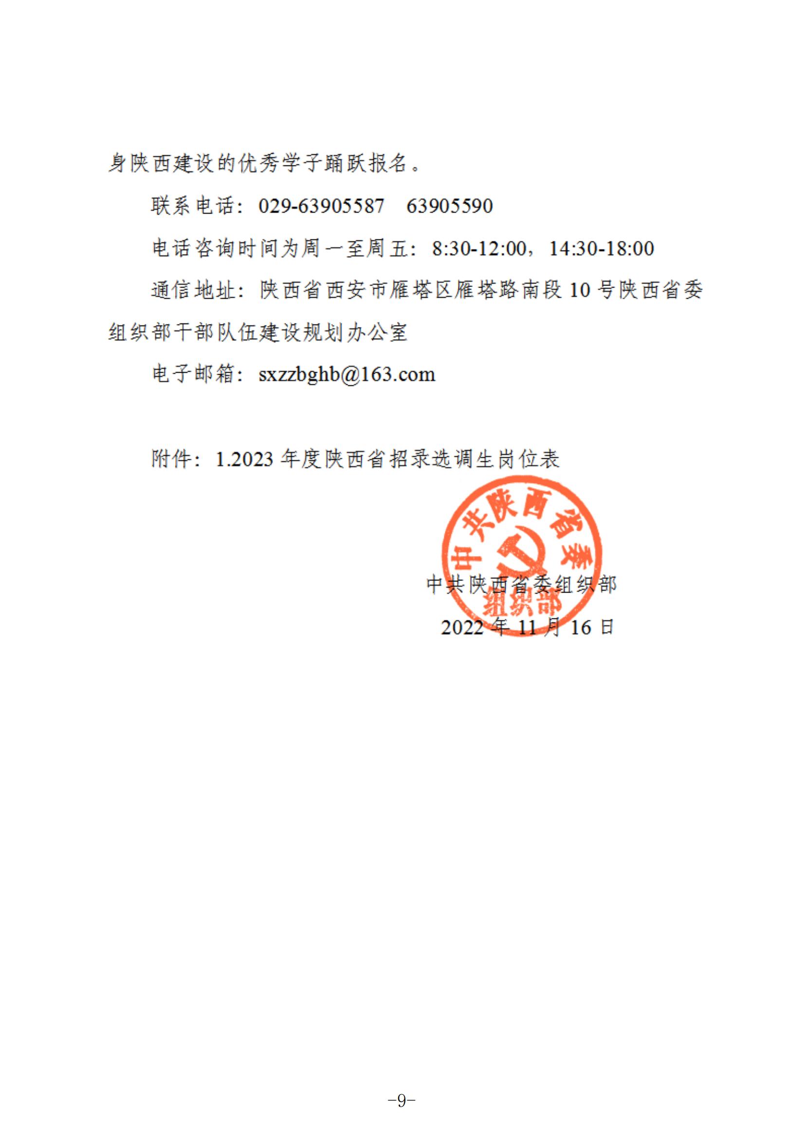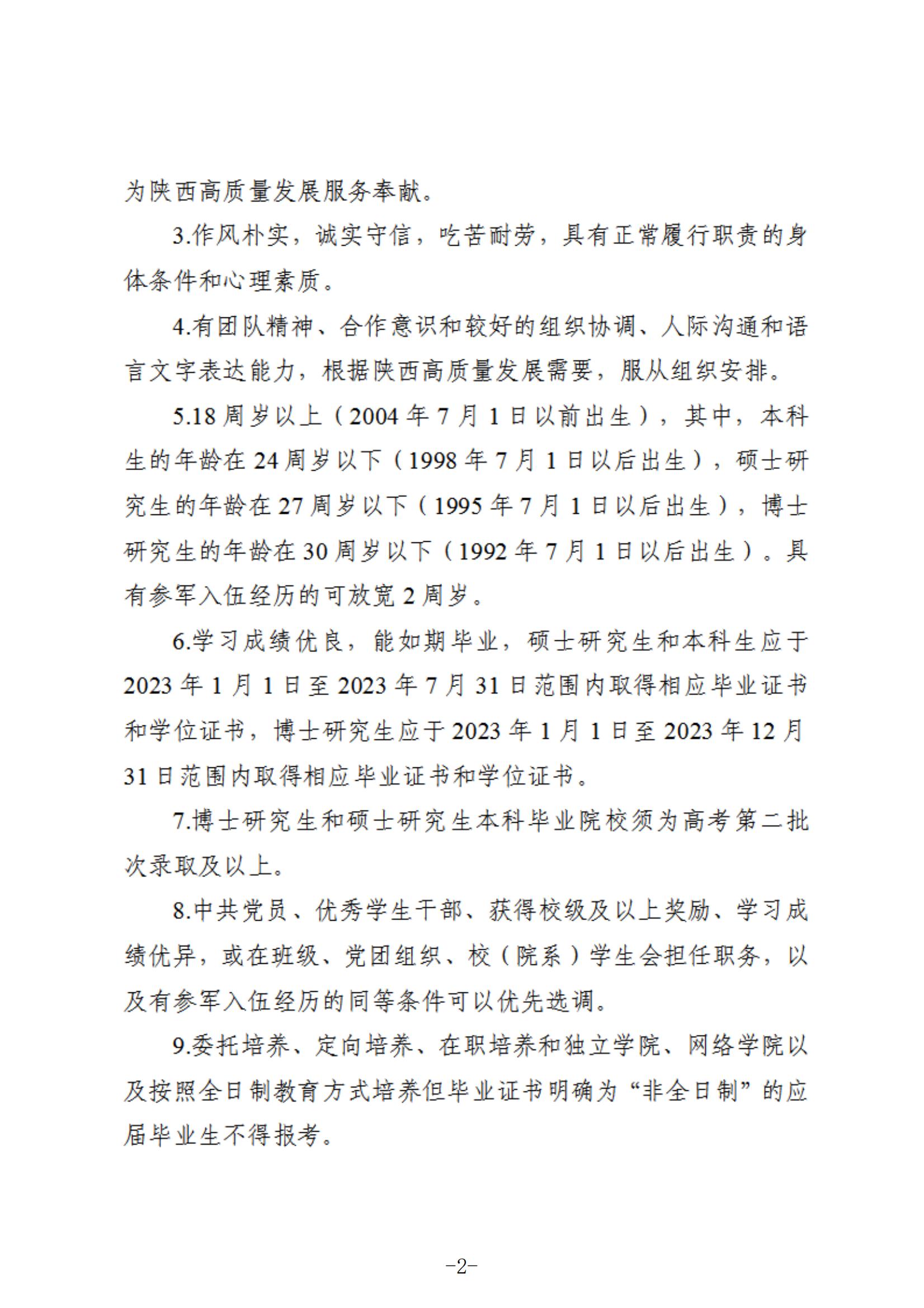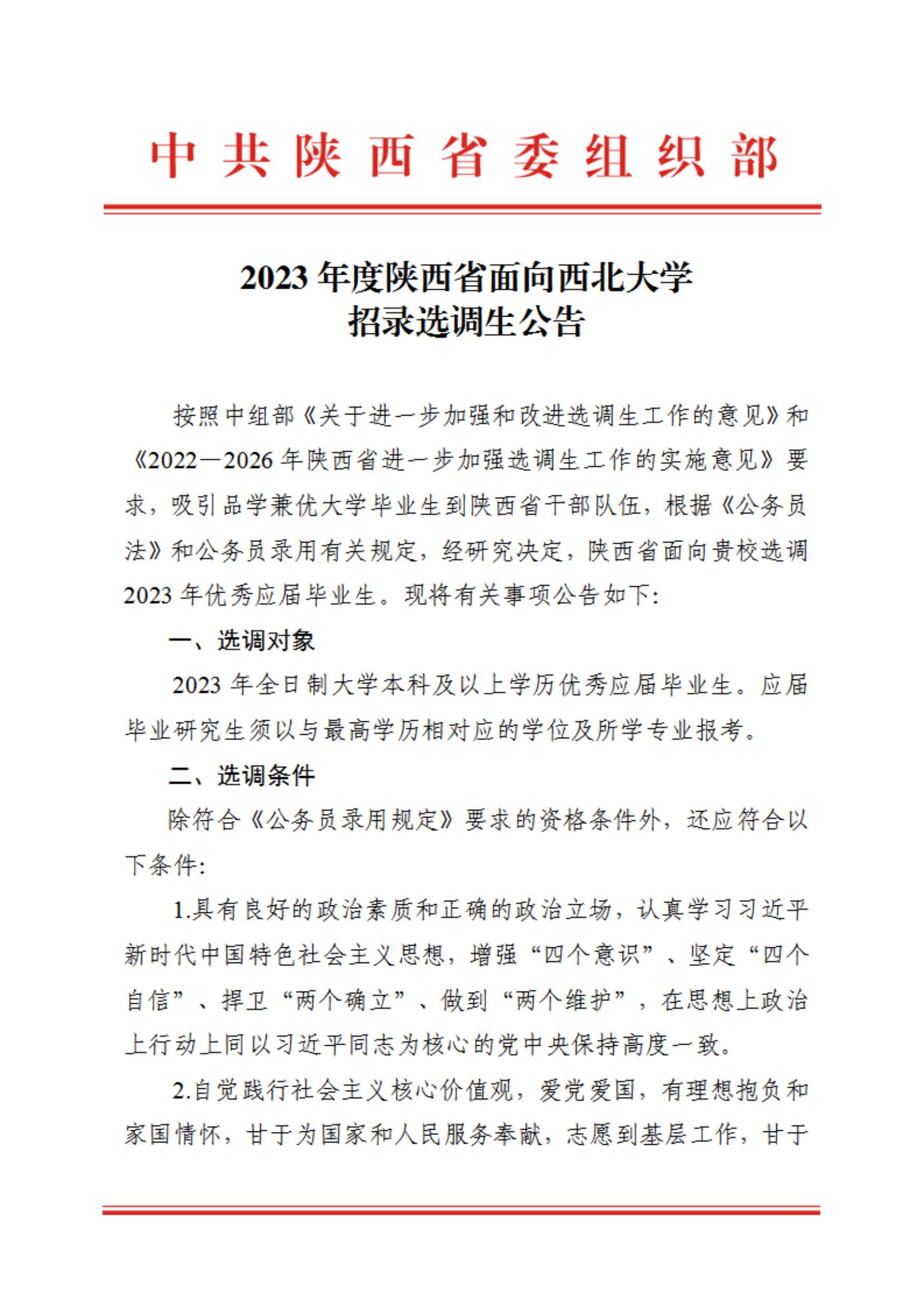 2023年度陕西省面向乐动网页版登录入口招录选调生公告
