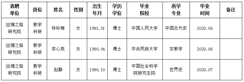 经用人单位推荐,人力资源部审查,学校教学督导及院系相关专家考核,我校拟确定下列人员来校工作。本着公平、公正、公开的原则,现将本次拟选聘人员基本情况公示如下: