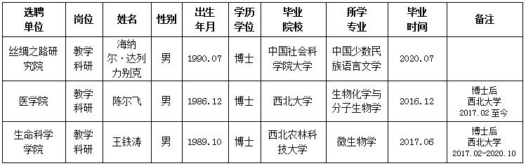 经用人单位推荐,人力资源部审查,学校教学督导及院系相关专家考核,我校拟确定下列人员来校工作。本着公平、公正、公开的原则,现将本次拟选聘人员基本情况公示如下: