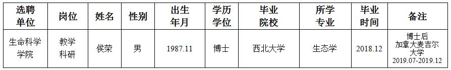 经用人单位及教学督导考核、学校研究,拟同意选聘下列人员来校工作,其聘任关系为A类人事代理。本着公平、公正、公开的原则,现将拟选聘人员基本情况公示如下: