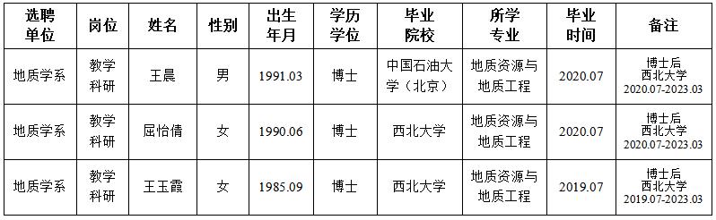 经用人单位及教学督导考核、学校研究,拟同意选聘下列人员来校工作,其聘任关系为A类人事代理。本着公平、公正、公开的原则,现将拟选聘人员基本情况公示如下: