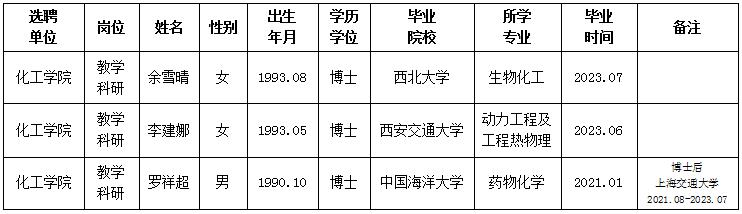 经用人单位推荐,人力资源部审查,学校教学督导及院系相关专家考核,我校拟确定下列人员来校工作。本着公平、公正、公开的原则,现将本次拟选聘人员基本情况公示如下: