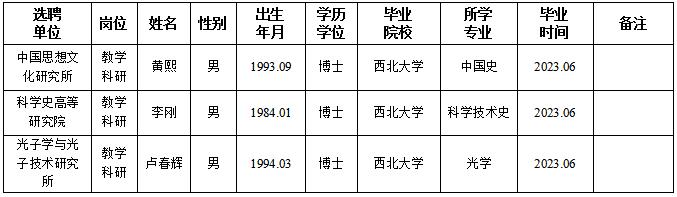 经用人单位及教学督导考核、学校研究,拟同意选聘下列人员来校工作,其聘任关系为人事代理。本着公平、公正、公开的原则,现将拟选聘人员基本情况公示如下: