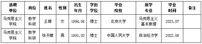 经用人单位推荐,人力资源部审查,学校教学督导及院系相关专家考核,我校拟确定下列人员来校工作。本着公平、公正、公开的原则,现将本次拟选聘人员基本情况公示如下: