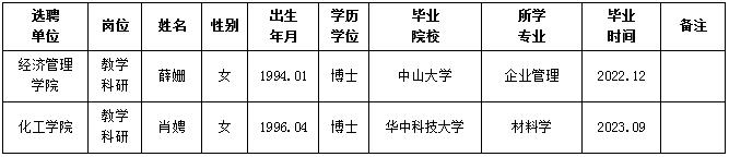 经用人单位推荐,人力资源部审查,学校教学督导及院系相关专家考核,我校拟确定下列人员来校工作。本着公平、公正、公开的原则,现将本次拟选聘人员基本情况公示如下: