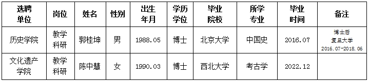 经用人单位推荐,人力资源部审查,学校教学督导及院系相关专家考核,我校拟确定下列人员来校工作。本着公平、公正、公开的原则,现将本次拟选聘人员基本情况公示如下: