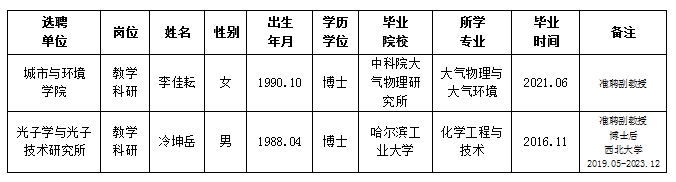 经用人单位推荐,人力资源部审查,学校教学督导及院系相关专家考核,学校教师高级职务特别评审,我校拟确定下列人员来校工作,聘任方式为事业编特别选聘。本着公平、公正、公开的原则,现将本次拟选聘人员基本情况公示如下: