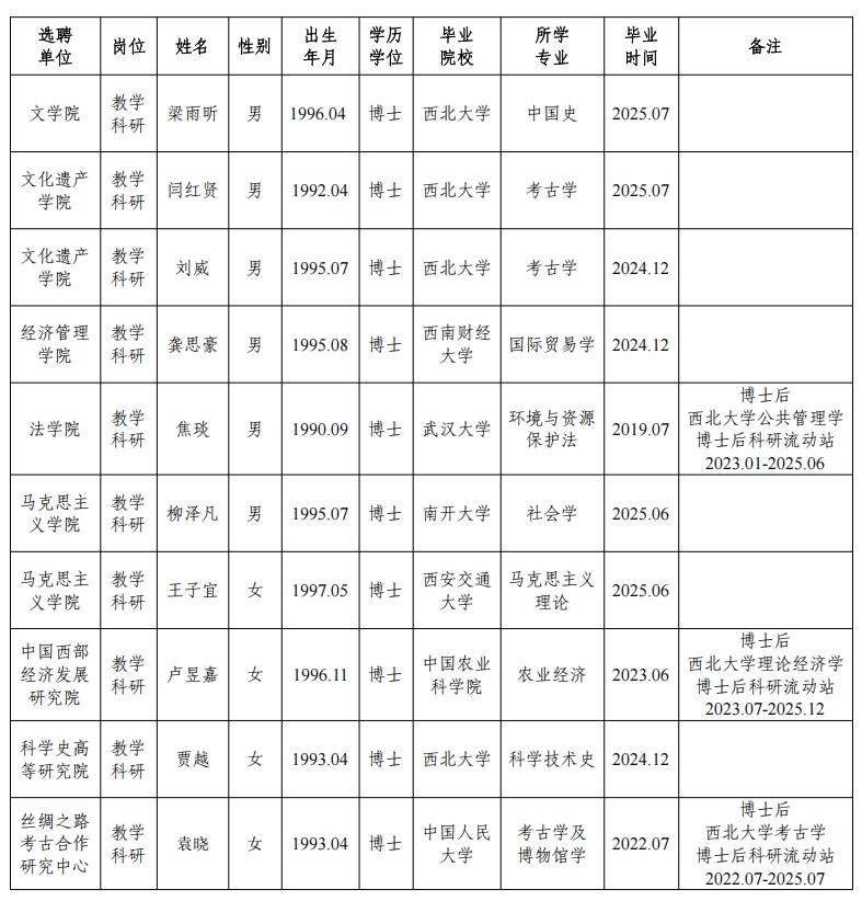 经资格审查,用人单位考查,学校专家评审会审议,我校拟确定下列人员来校工作,聘任方式为事业编正常选聘。本着公平、公正、公开的原则,现将本次拟选聘人员基本情况公示如下: