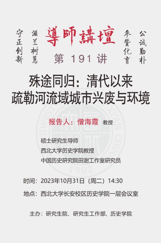 导师讲坛第191讲:殊途同归:清代以来疏勒河流域城市兴废与环境