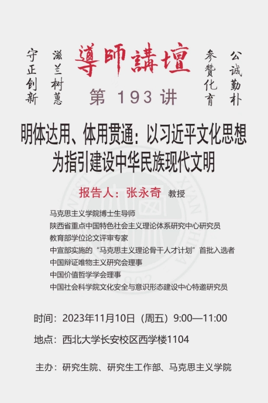 导师讲坛第193讲:明体达用、体用贯通:以习近平文化思想为指引建设中华民族现代文明