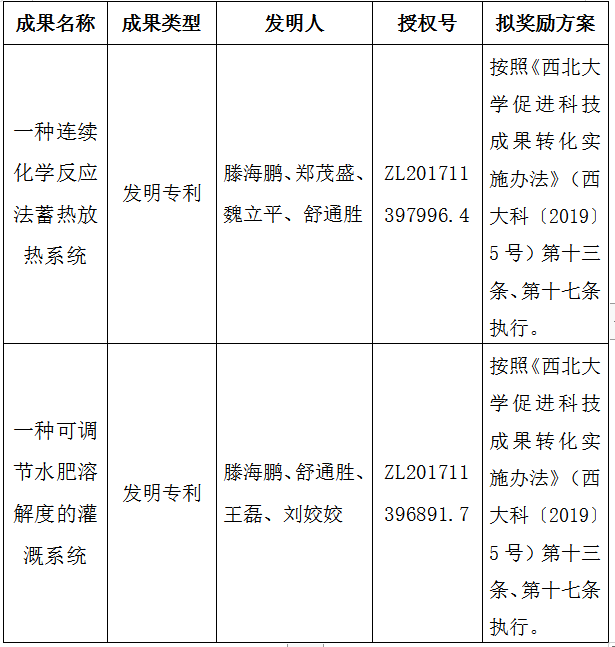按照《乐动网页版登录入口促进科技成果转化实施办法》(西大科〔2019〕5号)相关规定,拟对我校化工学院滕海鹏副教授作为成果负责人的2项发明专利权实施转化,现将相关信息公示如下: