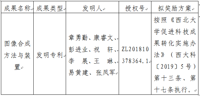 附件:拟许可成果信息及奖励方案