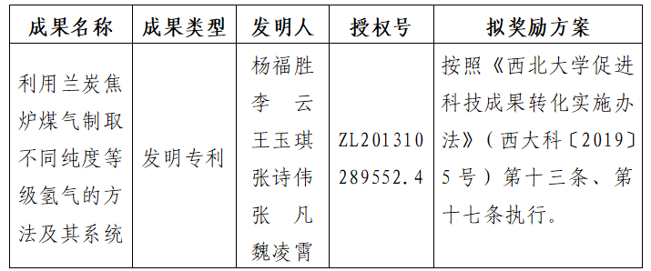 按照《乐动网页版登录入口促进科技成果转化实施办法》(西大科〔2019〕5号)相关规定,拟对我校化工学院王玉琪教授作为成果发明人之一的1项发明专利权实施转化,现将相关信息公示如下: