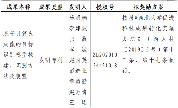 按照《乐动网页版登录入口促进科技成果转化实施办法》(西大科〔2019〕5号)相关规定,拟对我校信息科学与技术学院乐明楠老师作为成果负责人的1项发明专利权实施转化,现将相关信息公示如下: