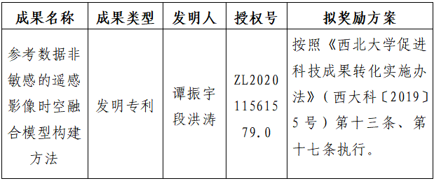 按照《乐动网页版登录入口促进科技成果转化实施办法》(西大科〔2019〕5号)相关规定,拟对我校城市与环境学院谭振宇老师作为成果负责人的1项发明专利权实施转化,现将相关信息公示如下: