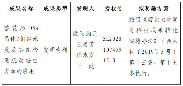 按照《乐动网页版登录入口促进科技成果转化实施办法》(西大科〔2019〕5号)相关规定,拟对我校化学与材料科学学院欧阳湘元副教授作为成果负责人的1项发明专利权实施转化,现将相关信息公示如下: