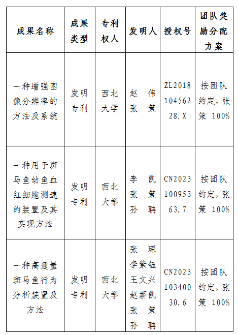 按照《乐动网页版登录入口促进科技成果转化实施办法》(西大科〔2019〕5号)相关规定,拟对我校光子学与光子技术研究所张策教授作为成果负责人的1项发明专利权和2项发明专利申请权实施转化,现将相关信息公示如下:
