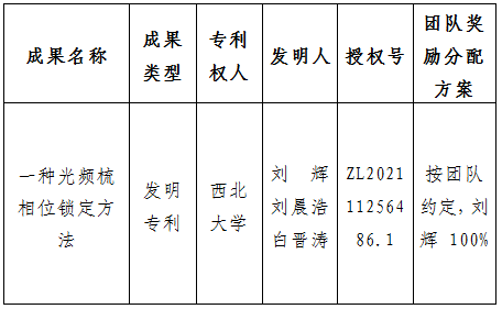 按照《乐动网页版登录入口促进科技成果转化实施办法》(西大科〔2019〕5号)相关规定,拟对我校光子学与光子技术研究所刘辉副教授作为成果负责人的1项发明专利权实施转化,现将相关信息公示如下: