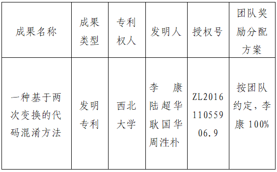 按照《乐动网页版登录入口促进科技成果转化实施办法》(西大科〔2019〕5号)相关规定,拟对我校计算机学院李康教授作为成果负责人的1项发明专利权实施转化,现将相关信息公示如下: