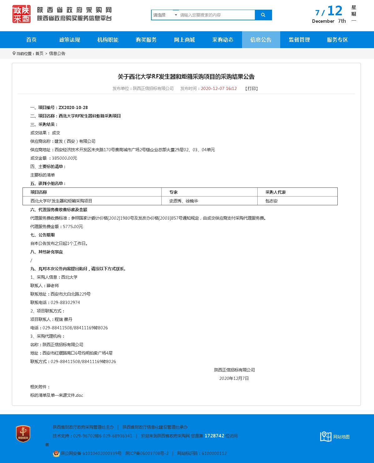 乐动网页版登录入口RF发生器和炬箱采购项目的采购结果公告
