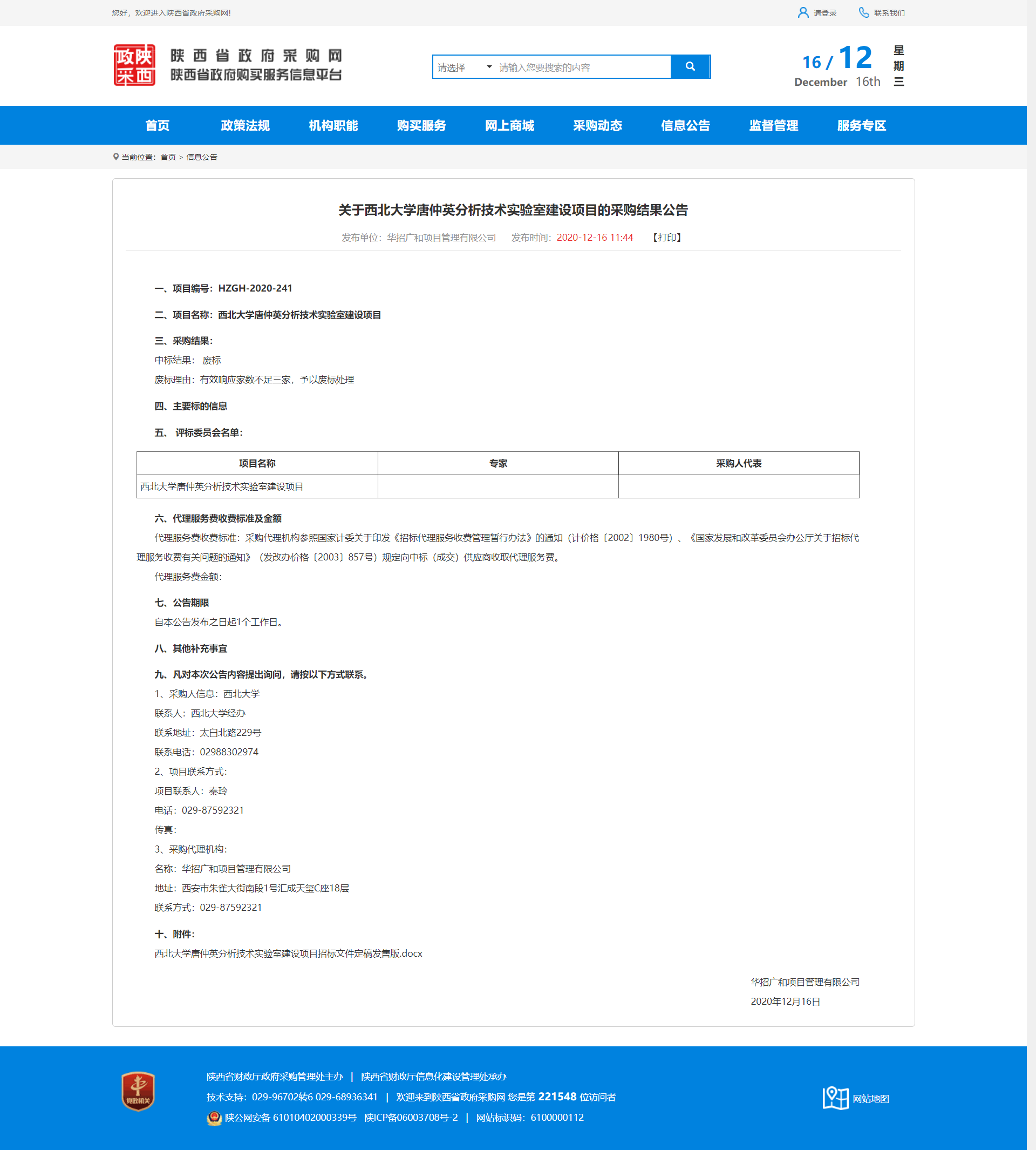 关于乐动网页版登录入口唐仲英分析技术实验室建设项目的采购结果公告 作者: 编辑:薛利娟 时间:2020-12-16 原公告地址:http://www.ccgp-shaanxi.gov.cn/notice/noticeDetail.do?noticeguid=8a85be31765f9a2a017669a24474710e