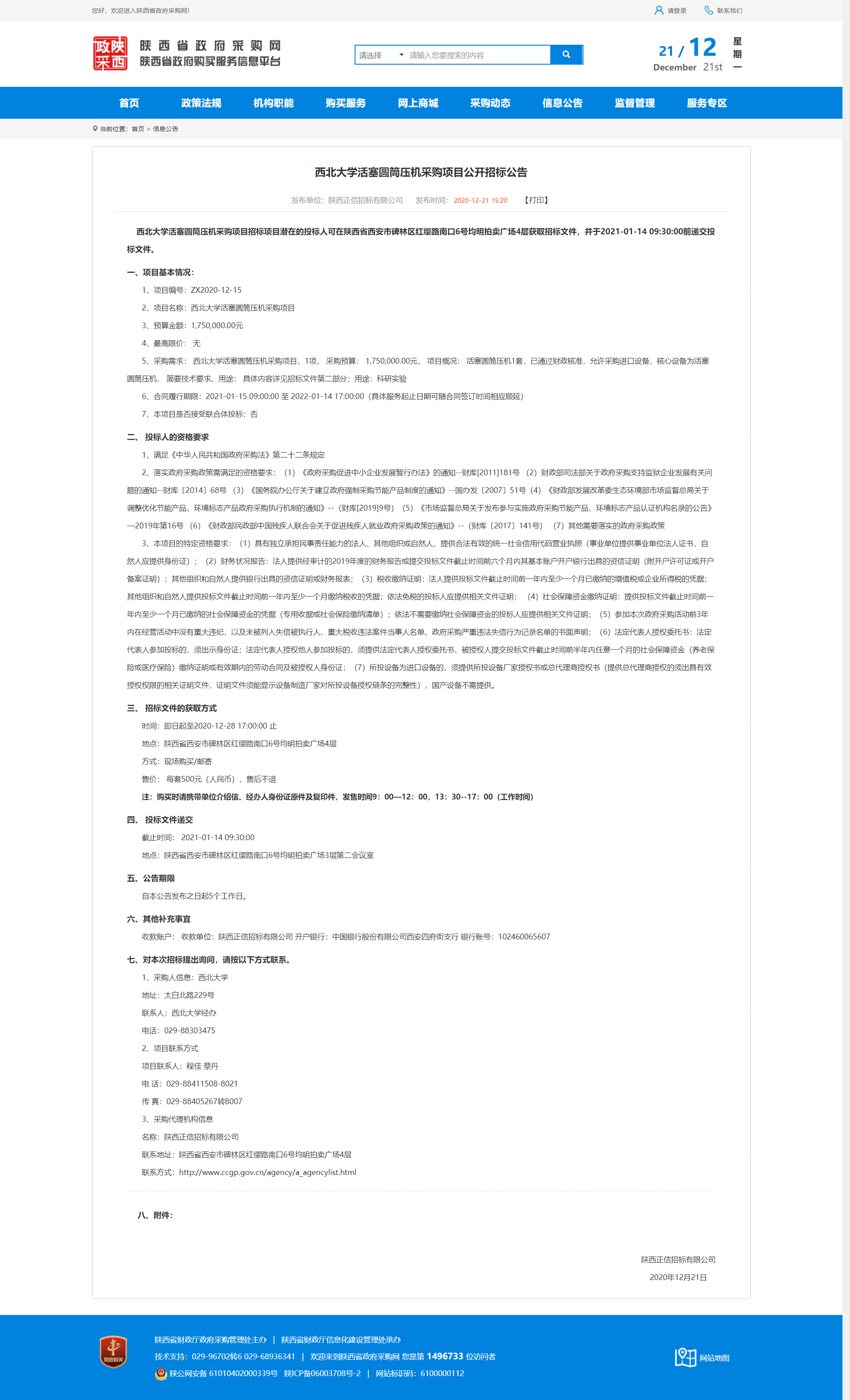 乐动网页版登录入口活塞圆筒压机采购项目公开招标公告 作者: 编辑:薛利娟 时间:2020-12-21 原公告地址:http://www.ccgp-shaanxi.gov.cn/notice/noticeDetail.do?noticeguid=8a85be33765f9dd0017683bb212e48f1