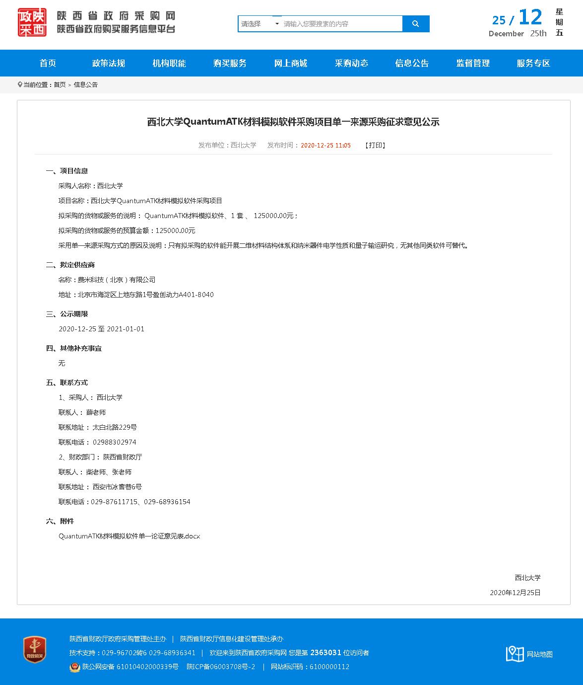 乐动网页版登录入口QuantumATK材料模拟软件采购项目单一来源采购征求意见公示