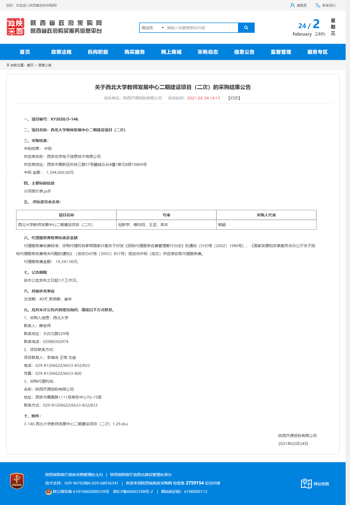 乐动网页版登录入口教师发展中心二期建设项目(二次)的采购结果公告 作者: 编辑:薛利娟 时间:2021-02-24 原公告地址:http://www.ccgp-shaanxi.gov.cn/notice/noticeDetail.do?noticeguid=8a85be3477b2ecb70177d2a0f8a67706