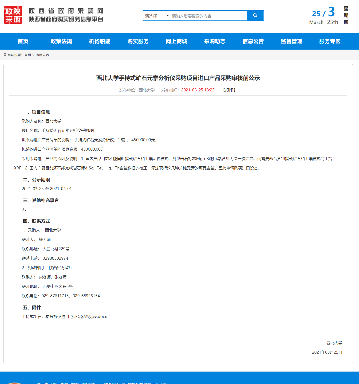 乐动网页版登录入口手持式矿石元素分析仪采购项目进口产品采购审核前公示