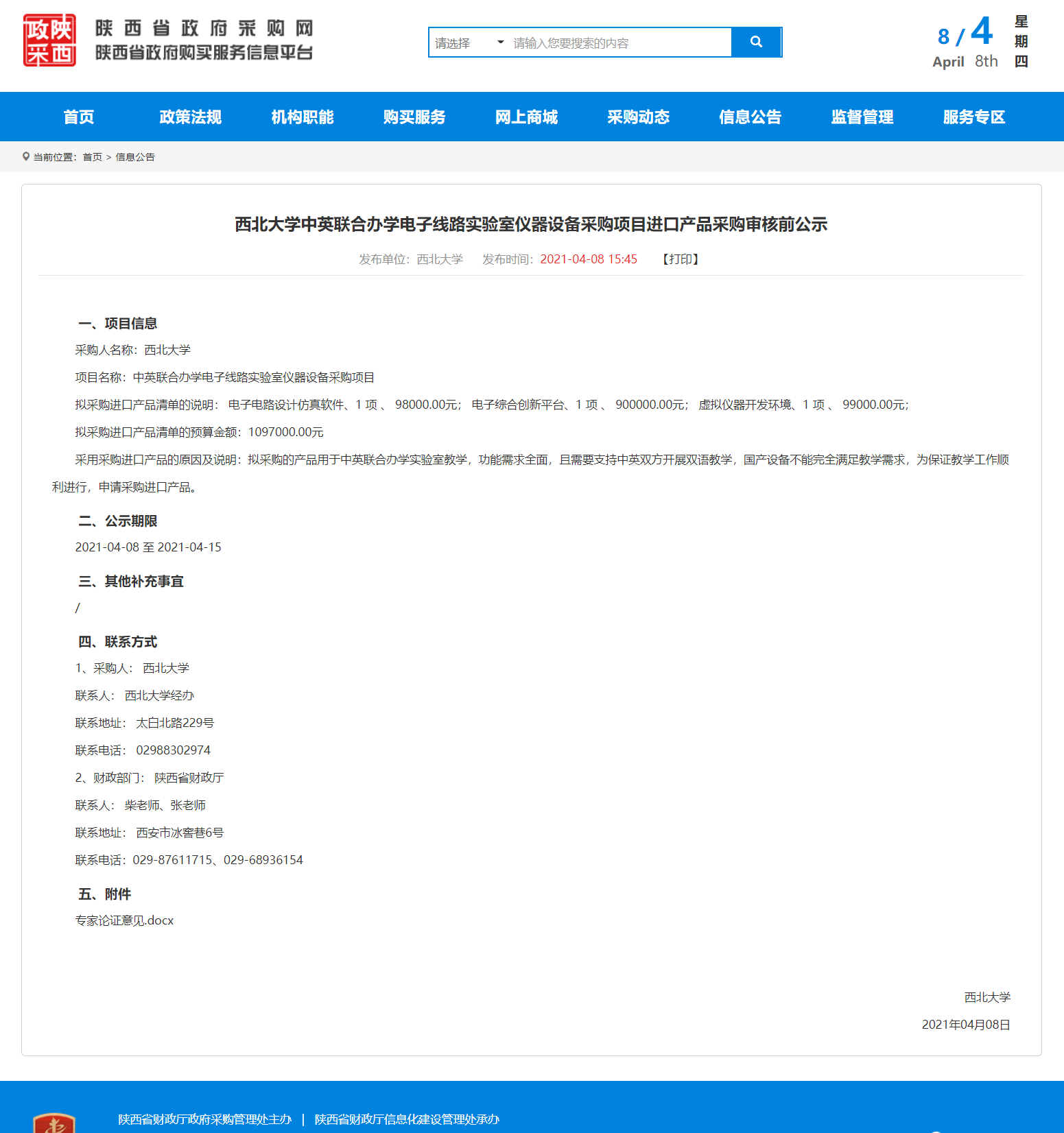乐动网页版登录入口中英联合办学电子线路实验室仪器设备采购项目进口产品采购审核前公示
