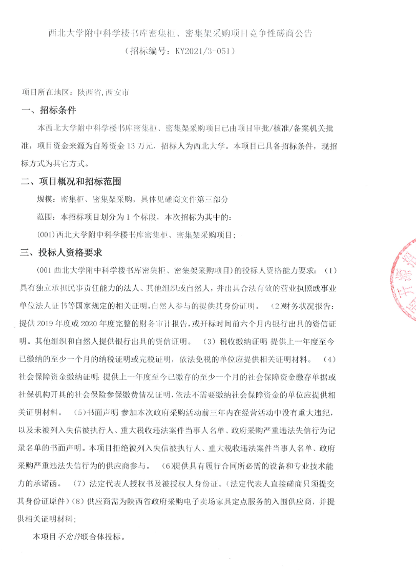 乐动网页版登录入口附中科学楼书库密集柜、密集架采购项目竞争性磋商公告