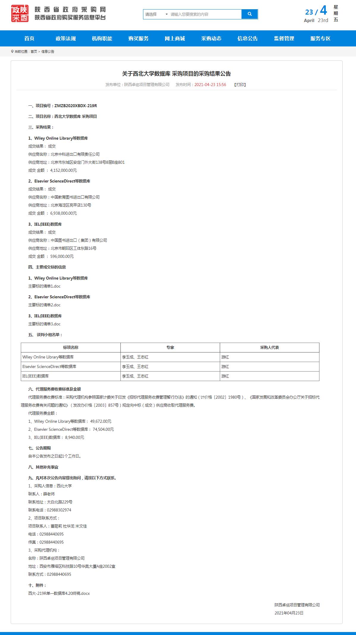 关于乐动网页版登录入口数据库采购项目的采购结果公告