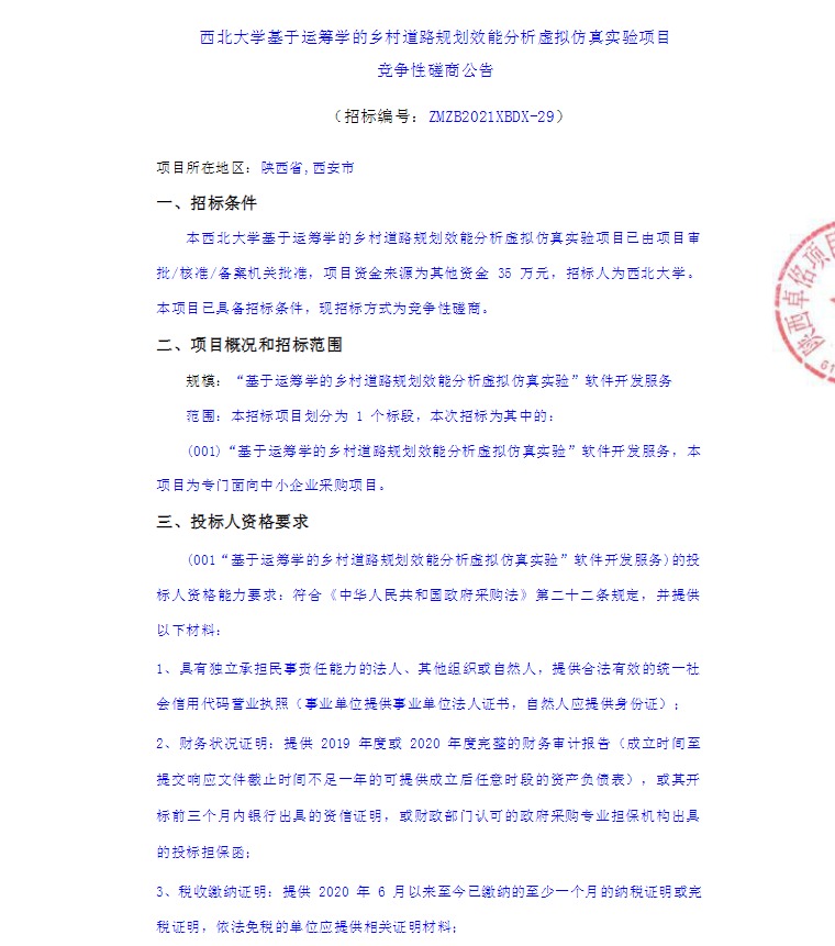 乐动网页版登录入口基于运筹学的乡村道路规划效能分析虚拟仿真实验项目竞争性磋商公告