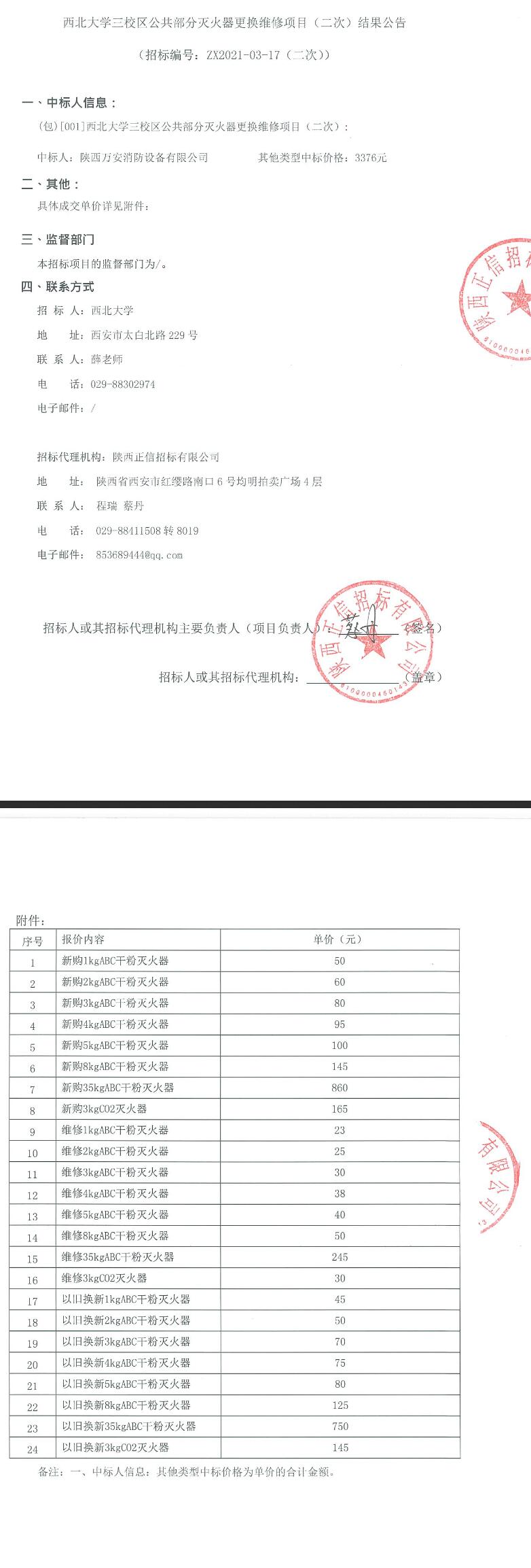 乐动网页版登录入口三校区公共部分灭火器更换维修项目(二次)结果公告