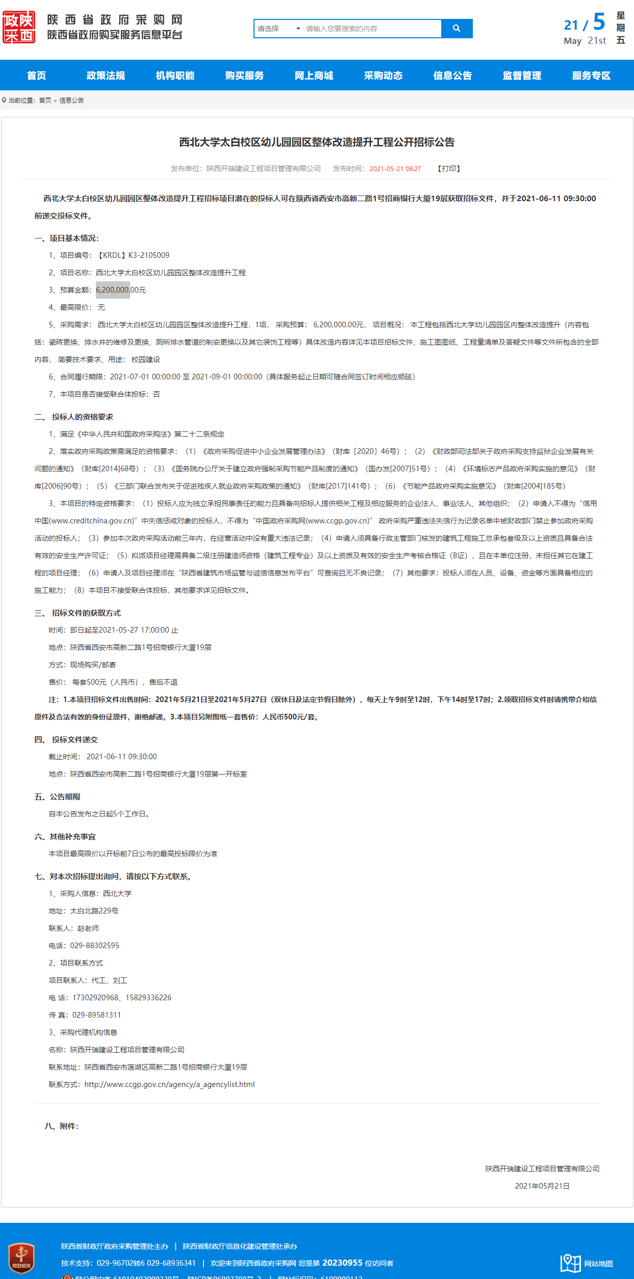 乐动网页版登录入口太白校区幼儿园园区整体改造提升工程公开招标公告