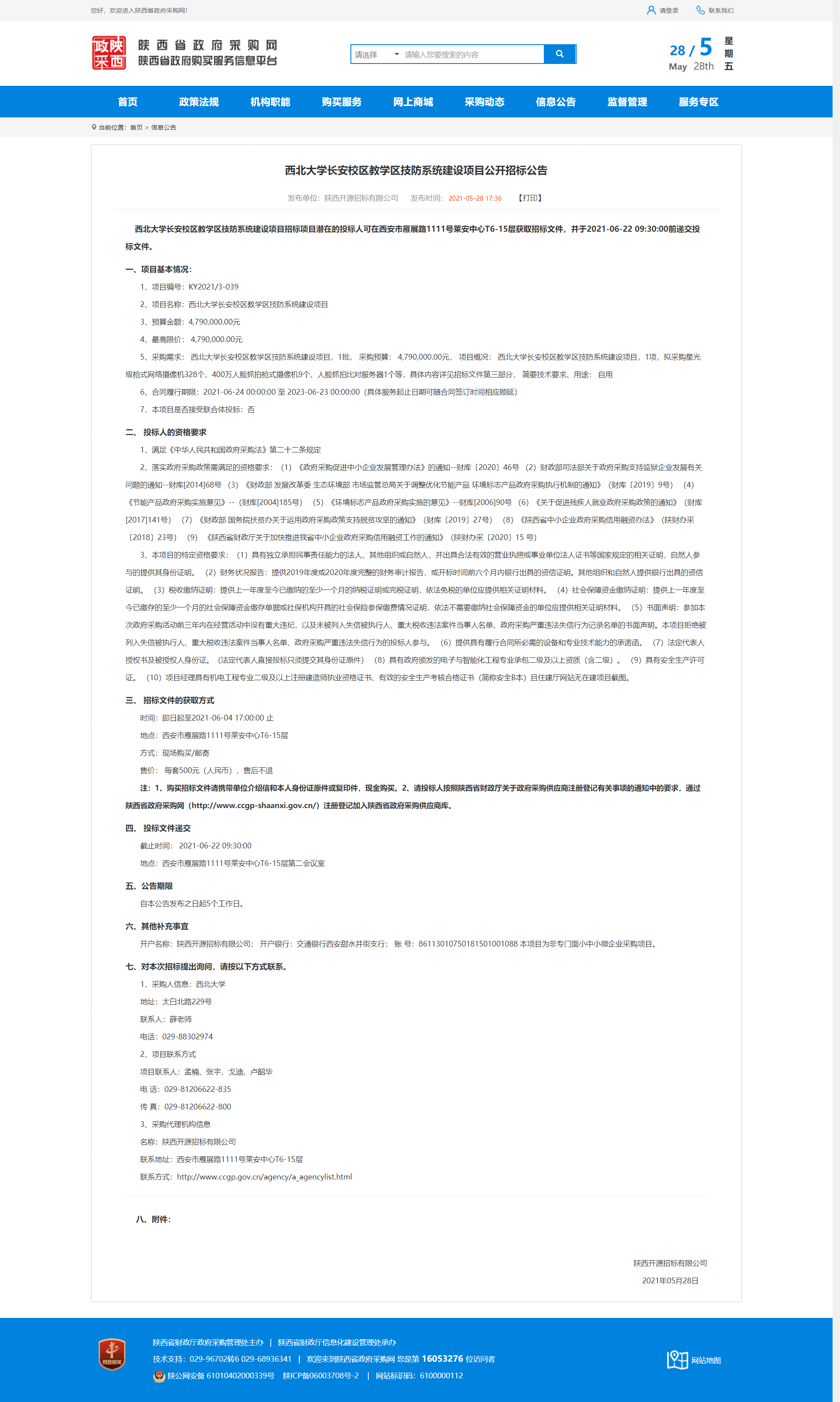 乐动网页版登录入口长安校区教学区技防系统建设项目公开招标公告 作者: 编辑:薛利娟 时间:2021-05-28 原公告地址:http://www.ccgp-shaanxi.gov.cn/notice/noticeDetail.do?noticeguid=8a85be3478a597990179b2102a6f761a