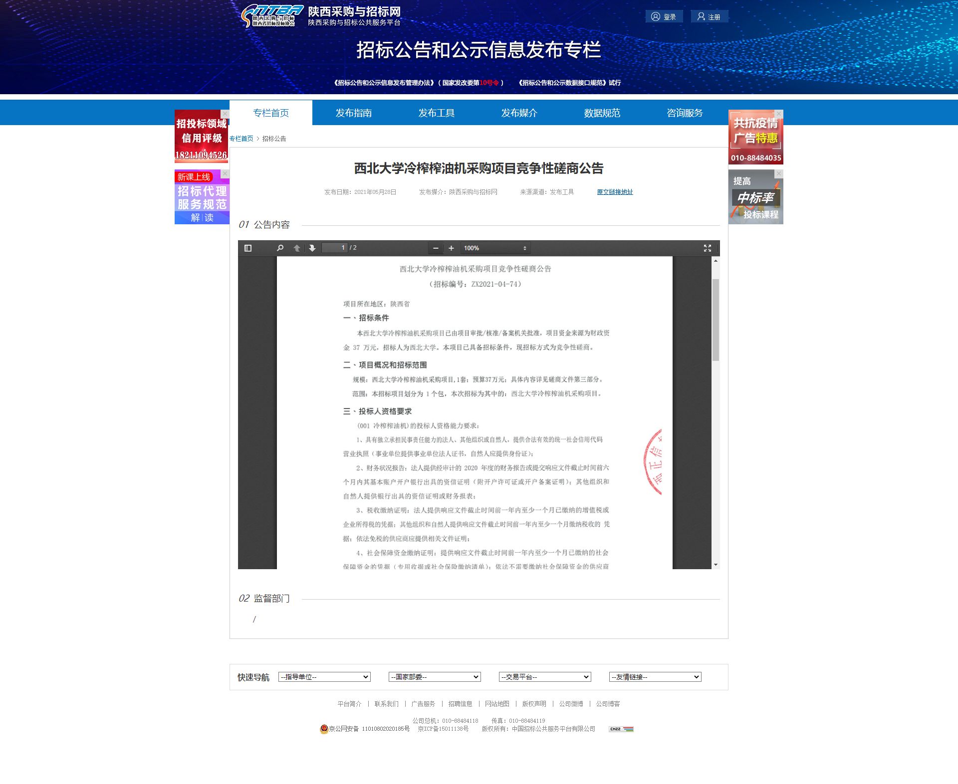 乐动网页版登录入口冷榨榨油机采购项目竞争性磋商公告 作者: 编辑:薛利娟 时间:2021-05-28 原公告地址:http://bulletin.sntba.com/biddingBulletin/2021-05-28/302428.html