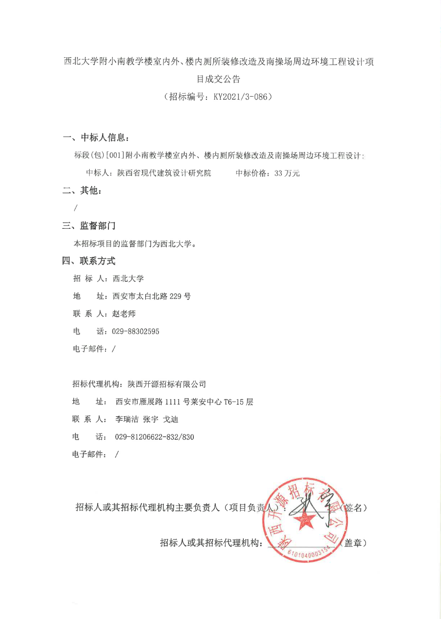 乐动网页版登录入口附小南教学楼室内外、楼内厕所装修改造及南操场周边环境工程设计项目成交公告