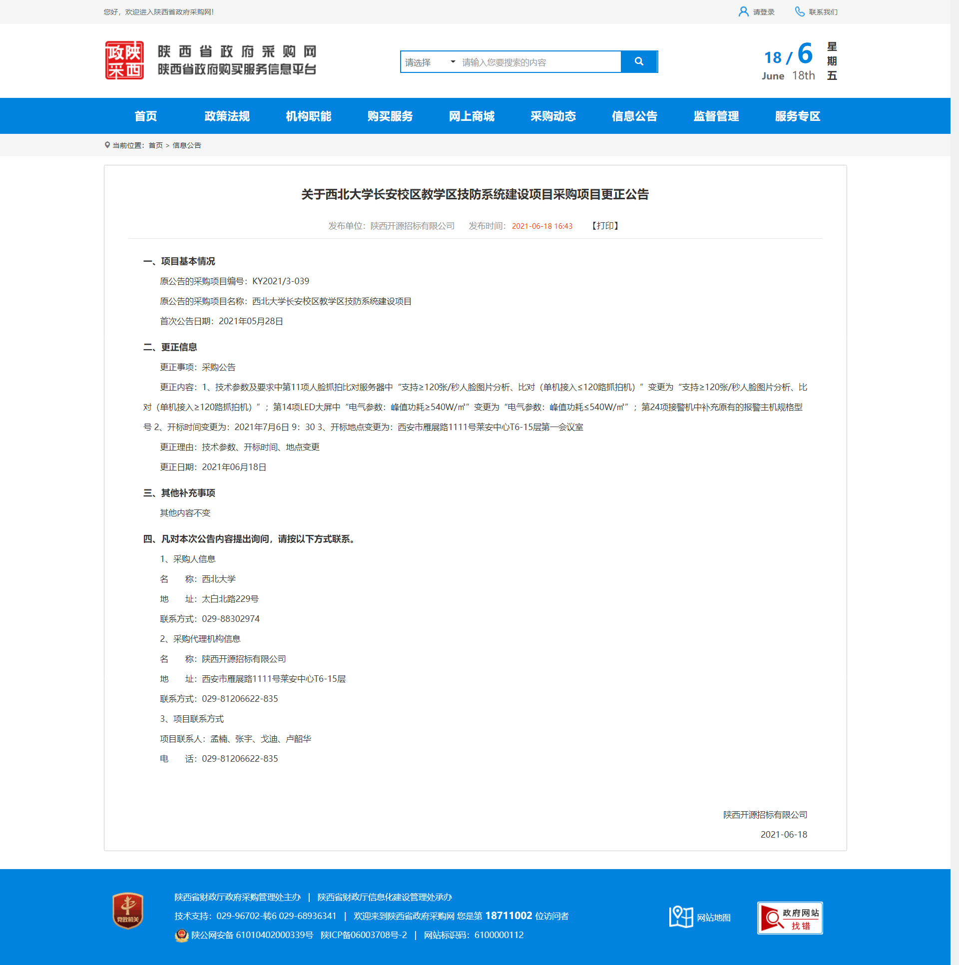 关于乐动网页版登录入口长安校区教学区技防系统建设项目采购项目更正公告 作者: 编辑:采购与招标办公室 时间:2021-06-18 原公告地址:http://www.ccgp-shaanxi.gov.cn/notice/noticeDetail.do?noticeguid=8a85be3478a59799017a1e3c725d50d9