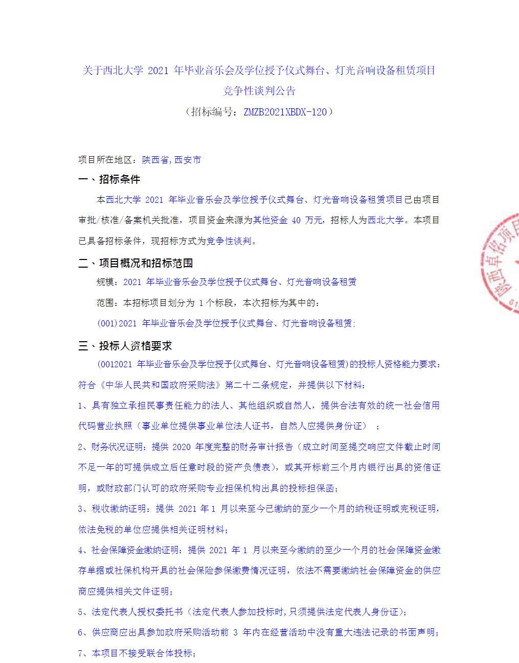 乐动网页版登录入口2021年毕业音乐会及学位授予仪式舞台、灯光音响设备租赁项目竞争性谈判公告