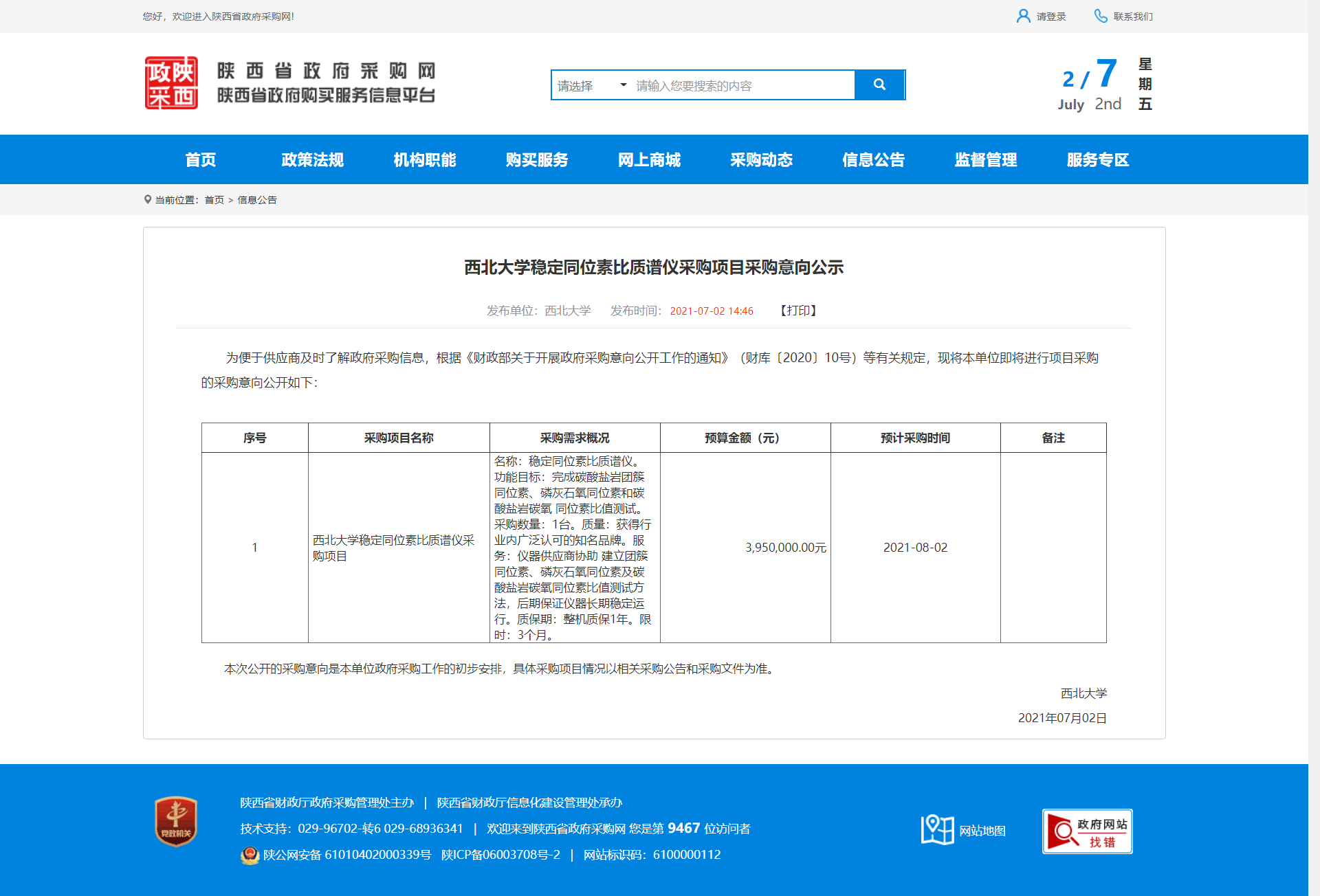 乐动网页版登录入口稳定同位素比质谱仪采购项目采购意向公示 作者: 编辑:采购与招标办公室 时间:2021-07-02 原公告地址:http://www.ccgp-shaanxi.gov.cn/notice/noticeDetail.do?noticeguid=8a85be317a51dcbc017a65e4a5e21daf